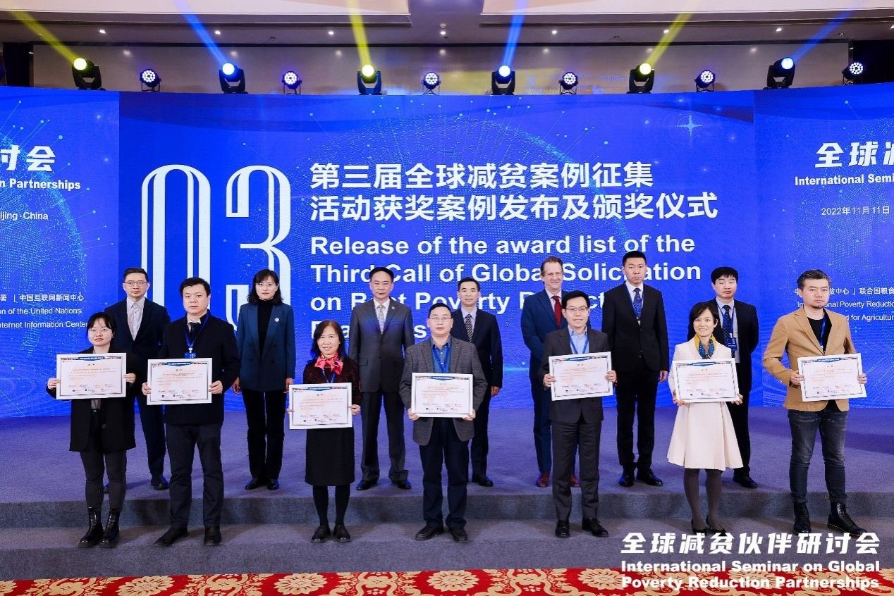 On 11 November, the 2022 International Seminar on Global Poverty Reduction Partnerships, jointly organized by the International Poverty Reduction Center in China (IPRCC), the International Fund for Agricultural Development (IFAD), the Food and Agriculture Organization of the United Nations (FAO), the World Food Program (WFP) and the China Internet Information Center (CIIC), was held at the Beijing Conference Center both onsite and online. More than 100 representatives from Chinese and foreign government departments, international agencies, social organizations, research institutes, and media participated in the seminars, and more than 100,000 people watched online. The award list of the third call of the Global Solicitation on Best Poverty Reduction Practices Best Cases was announced at the seminar, and the Case of Using University Resources to Empower Regional Industrial Development - Xiamen University's Construction of Kangye Poverty Alleviation Industrial Park in Longde County was successfully selected and will be collected into the Compilation of Best Poverty Reduction Case Studies 2022. This is the first time that XMU won this award.
