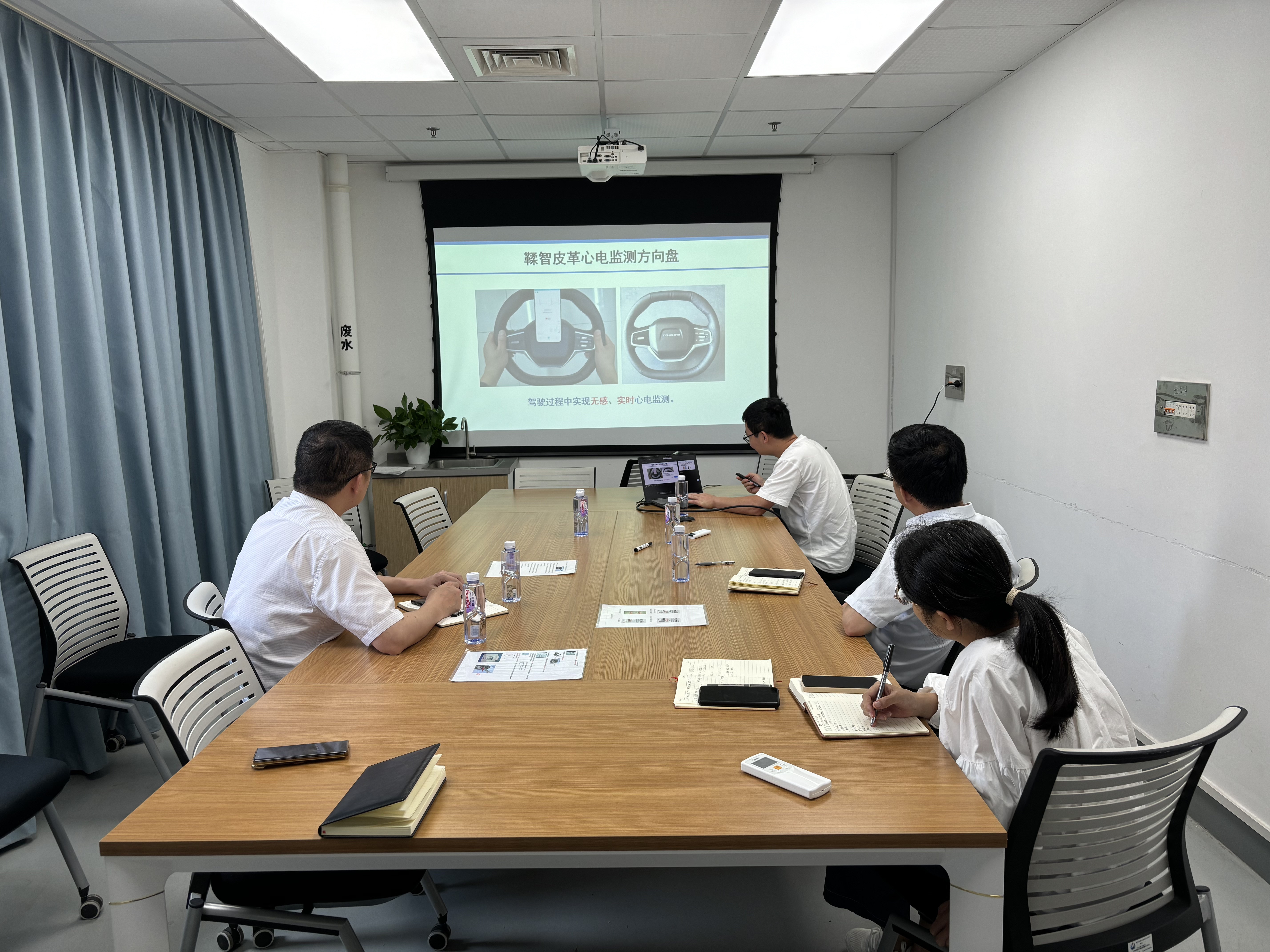 然后,李林副院长对研究院院情进行了简要汇报。随后,谢瑞杰助理教授针对服饰、鞋履的原材料多为布与皮革的特点,详细地介绍了智能电子与鞣制皮革、多功能纤维相结合的诸多应用,既满足其可穿戴的特性,又能很好地通过各项生理指标监测人体健康。熊祖江总监对此类应用十分感兴趣,表示他们确实有符合的应用场景,如拳击手套与柔性电子结合监测拳击过程、穿戴内置柔性电子传感器的衣物监测长跑运动员的生理指标、佩戴特殊头盔采集极限运动的运动员的脑电信号等。霍峰蔚常务副院长表示,柔性电子能很好地与运动产品结合并预知运动员极限,在防止运动损伤方面有着很大的发展潜力,希望能与安踏集团联合开展研究,为体育保障出谋划策。