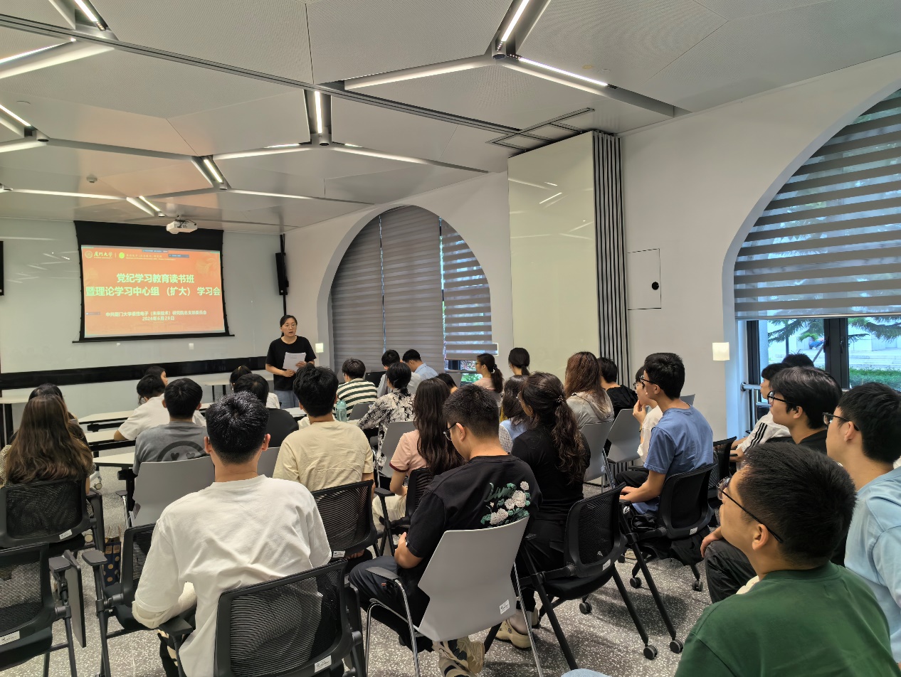 师生党员根据学习内容充分交流讨论。教工党支部宣传委员侯雅琦表示,通过这次学习,更加深刻地认识到党纪建设的重要性。她提出,党纪学习教育不是一蹴而就的,需要持续不断地学习和实践。她倡议全院师生党员要在科研和日常生活中积极践行党的纪律要求,做到自我约束、自我警醒,并积极参与党内生活活动,不断提升自己的思想觉悟和行动能力。与会学生党员也纷纷表示将把今天的收获转化为前进的动力,进一步加强党性修养和纪律意识,为研究院的发展乃至国家的科技进步贡献自己的力量。