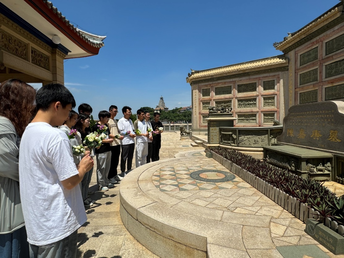 随后,全体党员前往陈嘉庚陵墓进行缅怀瞻仰。怀着对陈嘉庚先生的敬意,党员同志们手捧鲜花,缅怀嘉庚先生。嘉庚先生以卓越的爱国情怀和无私奉献的精神,为教育和民族复兴贡献了一生。我们向他致敬,表达我们深深的敬意和感激之情,嘉庚精神将永远激励着我们前行。