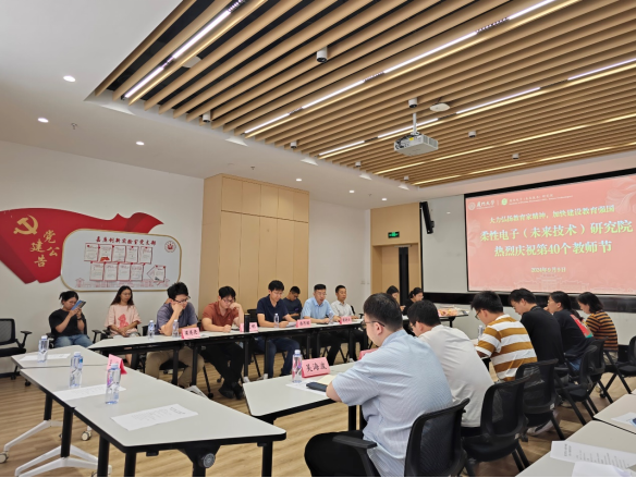 在第40个教师节来临之际,厦门大学柔性电子(未来技术)研究院于9月9日下午在嘉庚创新实验室3号楼会议室5召开了建院以来的首次教师节座谈会,共同庆祝教师们的节日,并围绕“大力弘扬教育家精神,加快建设教育强国”主题展开交流。会议由团总支书记李智林主持,研究院全体教职工和学生代表积极参与。