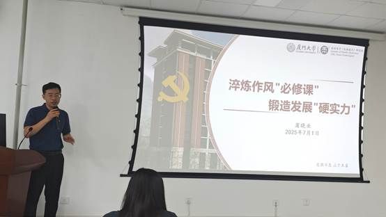 在专题党课环节,蒲晓业以《淬炼作风“必修课”,锻造发展“硬实力”》为题,为全体师生党员讲授了一堂深刻生动的专题党课。他通过回顾党的百年奋斗历程,以"延安整风运动"中的典范以及老一辈革命家的生动事例,深刻阐释了我们党理论联系实际、密切联系群众、批评与自我批评三大优良作风的历史传承和时代价值。结合研究院青年师生特点,蒲晓业强调,青年党员要传承红色基因,在科技创新中践行党的优良作风:坚持问题导向,扎根科研一线,保持严谨学风。最后,他勉励全体师生以延安作风淬炼初心使命,以中央八项规定精神破除发展藩篱,用“柔性”思政润育人心,以“刚性”纪律筑牢基石,为学校“双一流”建设凝聚磅礴力量。