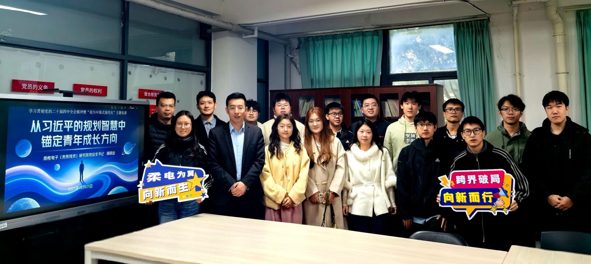 为深入学习贯彻习近平总书记关于规划工作的重要论述与智慧理念,引导青年党员及入党积极分子精准把握个人成长与中国式现代化建设的内在联系,自觉将个人发展融入国家发展大局,12月31日下午,柔性电子(未来技术)研究院党总支书记蒲晓业在翔安校区“一站式”学生社区共享空间,以“从习近平的规划智慧中锚定青年成长方向”为主题,为党员及入党积极分子讲授专题党课。