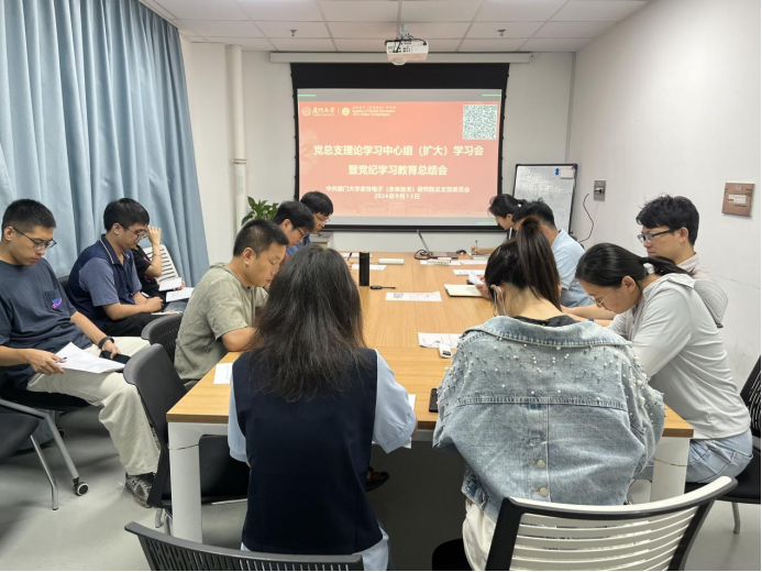 9月13日下午,柔性电子(未来技术)研究院党总支在嘉庚创新实验室1号楼1370会议室召开理论学习中心组(扩大)学习会暨党纪学习教育总结会。研究院党政领导班子、三所一中心负责人、师生党支部书记和支委参加会议,研究院党总支副书记(主持工作)蒲晓业主持会议并讲话。会议传达了习近平总书记在全国教育大会上的重要讲话精神,并对研究院党纪学习教育工作进行总结。