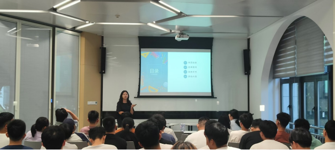 李智林详细介绍了学生日常管理的各项内容,包括校纪校规教育、诚信教育、考风考纪教育以及奖助学金政策等。面面俱到的讲解让同学们对学校和研究院的政策、制度规范有了更深入的了解,为他们在新环境中的学习生活奠定了坚实基础。