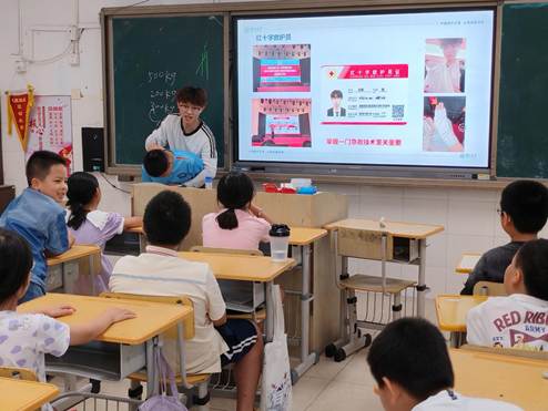 活动最后,宣讲团成员还现场演示了止血包扎、海姆立克急救法、心肺复苏等急救技能,细致讲解操作要点,帮助孩子们掌握基本的急救安全知识,提升自我保护能力。