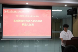 在工作报告审议后,大会进入第二届研究生会主席团选举环节。4名主席团候选人依次进行竞选演讲,分享工作理念与规划;演讲结束后,工作人员严格按照差额选举规则发放选票,代表们认真填写并有序投票,经监票人、计票人清点统计,最终确定第二届研究生会主席团成员。