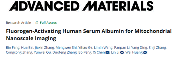 近日,厦门大学柔性电子(未来技术)研究院黄维院士、李林教授团队与合作者在线粒体超分辨荧光成像领域取得重要进展,提出白蛋白限域工程组装新策略,调控显影剂分子激发态释能过程,解决了线粒体靶向显影剂材料的发光亮度低和光毒性高的问题,实现了线粒体超分辨高质量荧光成像。相关成果以“Fluorogen-Activating Human Serum Albumin for Mitochondrial Nanoscale Imaging”为题发表在Advanced Materials(DOI: 10.1002/adma.202501849)期刊上。